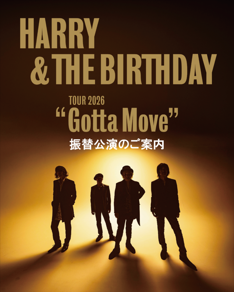 HARRY & THE BIRTHDAY TOUR 2026 「Gotta Move」1/26 札幌, 2/1横浜, 2/11仙台, 2/21名古屋公演 公演延期のお知らせ